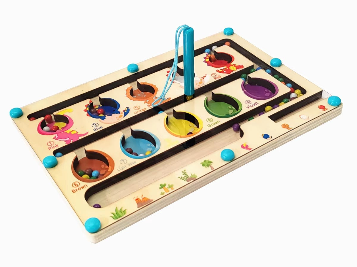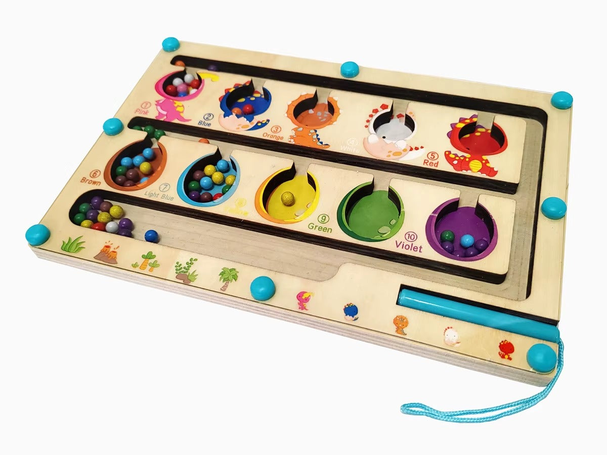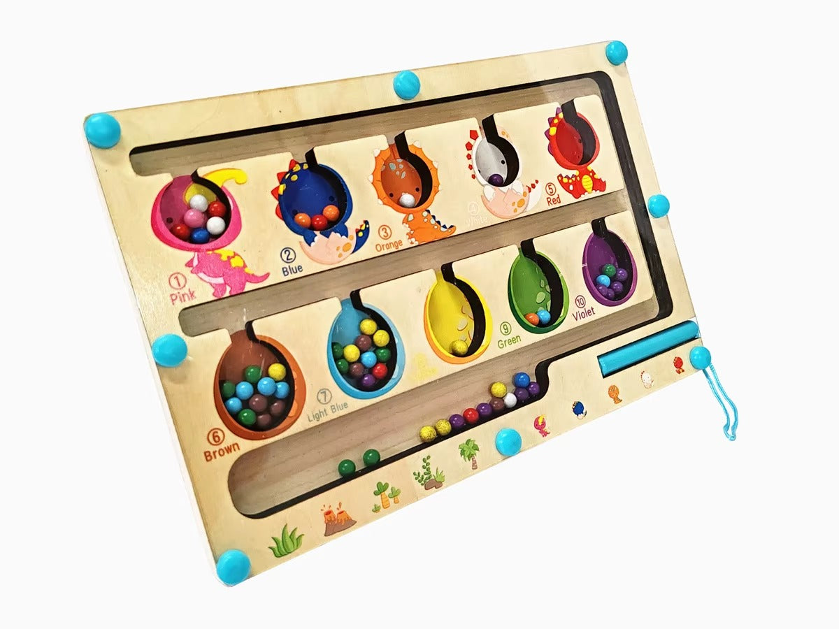 A magnetic sorting puzzle that introduces numerical correspondence and logic. The Challenge: Navigate colorful spheres to their matching numbered ports. The Gameplay: Use the attached magnetic stylus to sort beads through the winding track without losing a single piece to win.